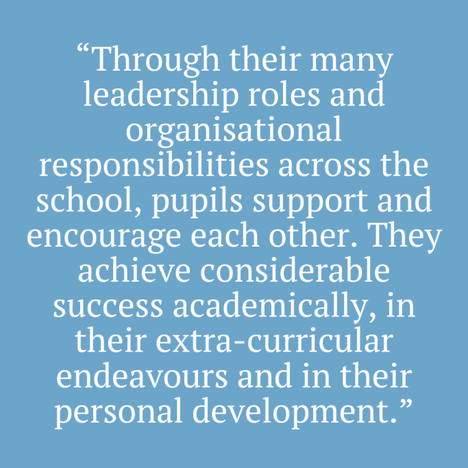 Throughout the school, there is a positive sense of community amongst pupils and staff. Leaders make sure that pupils are fully involved in school life, taking on many leadership and organisational roles. The sense of mutual purpose and clear direction encourages pupils to commit to the common good and achieve success both inside and outside the classroom. This is a significant strength of the school.