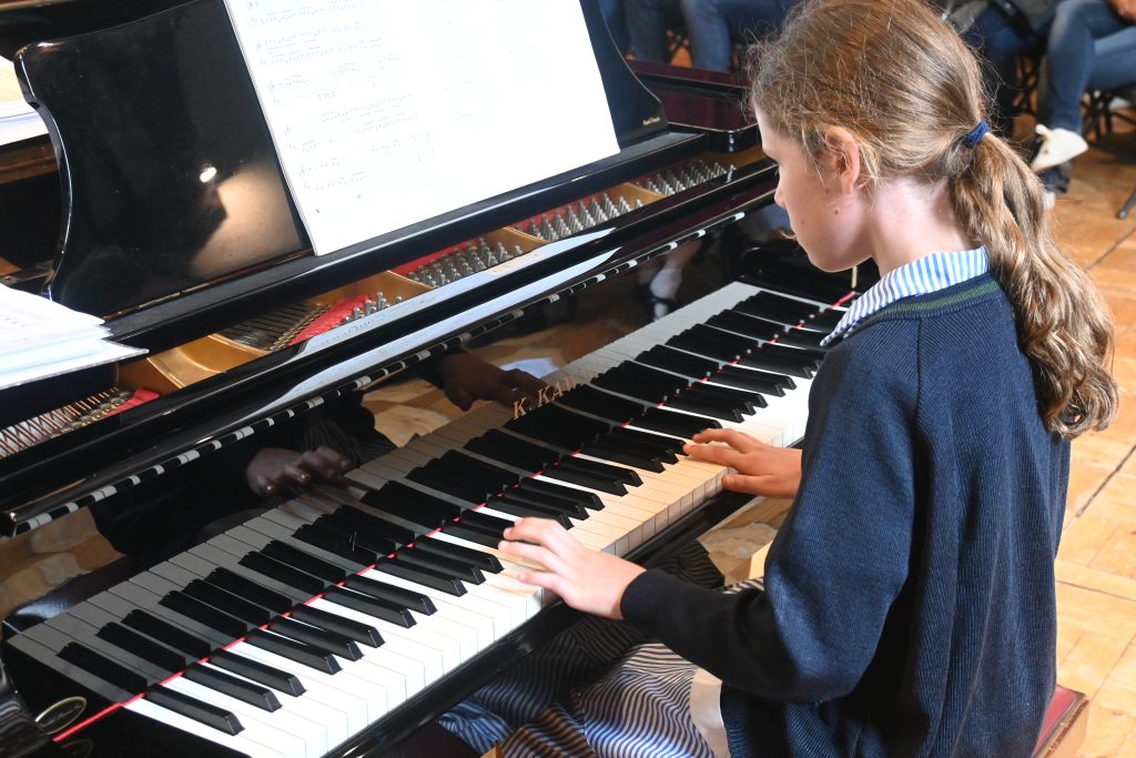 In Year 6, pupils consolidate skills and prepare for Senior music. They play keyboard two-handed, improvise blues melodies, and compose music for a short film. Lessons also build advanced music vocabulary to describe and analyse sound. Pupils perform regularly in concerts and community events, gaining confidence as musicians ready for the next stage.