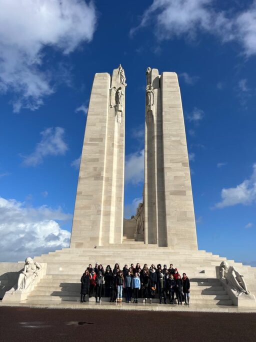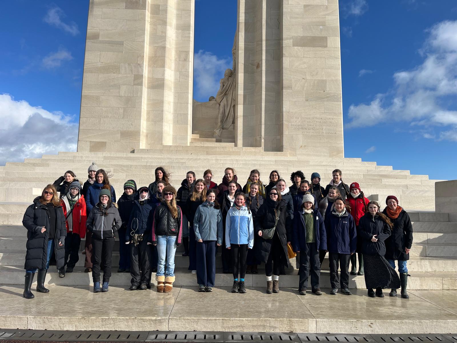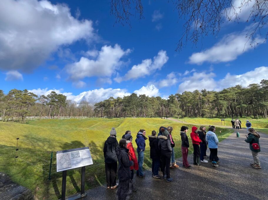 Their few days abroad have proven incredibly insightful into the conflict and a very rare opportunity to see deeply important pieces of history in person: they had the chance to visit Tyne Cot Cemetery, the Devonshire Regiment Cemetery on the Somme (where ancestors of students are buried), Beaumont-Hamel and the trenches and monument to the fallen, and the Vimy Ridge Memorial, even going down into the original tunnel systems under frontlines. The group also laid wreaths on behalf of The Maynard at the Menin Gate and the Thiepval Memorial.