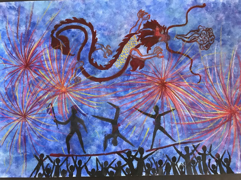 The Upper 3 have been looking at the theme of celebration in their art lessons this term. Here are some examples of their colourful and wide-ranging work including the Chinese New Year, Halloween, Christmas, Holi, Day of the Dead and 4th July.
